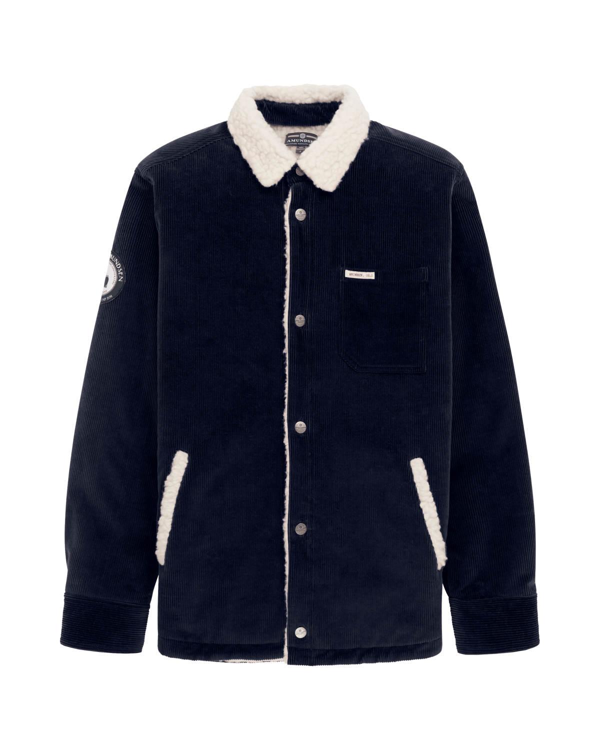 Overshirt in water-resistant stretch cotton corduroy from Cosserat Company, France. Lined with wool fleece from Pontetorto, Italy.