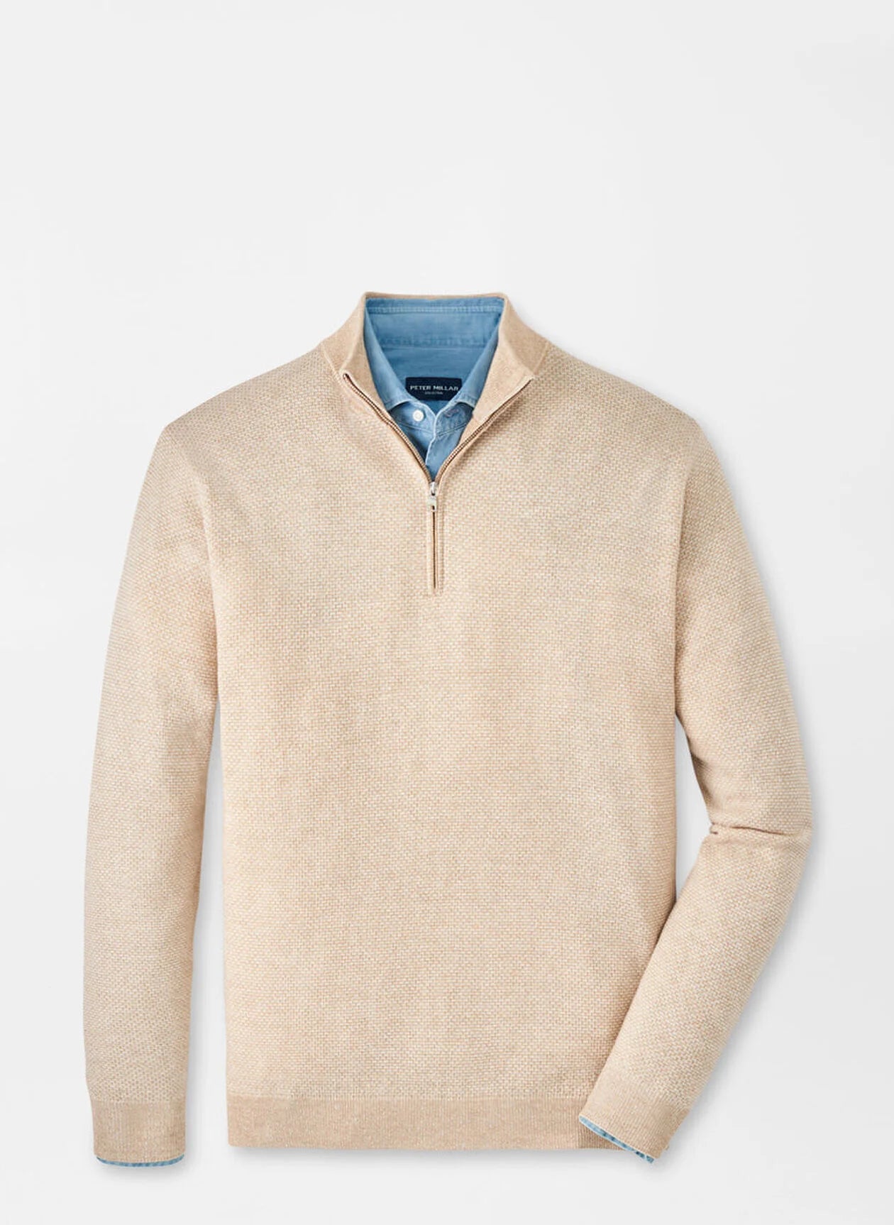 The Spring version of the Ashland is made from a luxuriously soft mélange Merino wool blended with breathable linen and cotton for a lightweight sweater perfect for the season. Subtle texture from a jacquard knit adds elegant style to this timeless quarter-zip sweater.